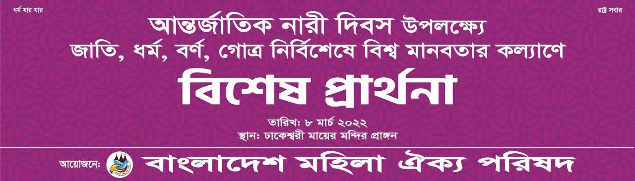 সমতা, মর্যাদা ও ন্যায়বিচারের ভিত্তিতে এমন এক সমাজ গড়ে তোলার আহ্বান জানানো হচ্ছে, যেখানে নারী কেবল প্রতীকী উপস্থিতি নয়, বরং পূর্ণ অধিকারসম্পন্ন নাগরিক হিসেবে প্রতিষ্ঠিত হবেন।